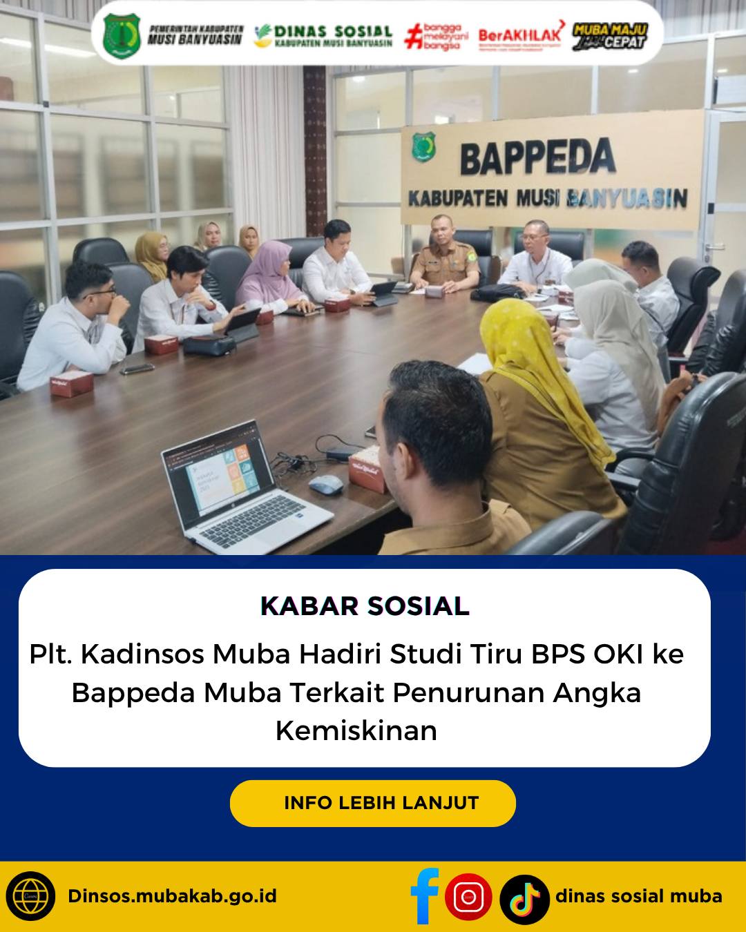 Plt. Kadinsos Muba Hadiri Studi Tiru BPS OKI ke Bappeda Muba Terkait Penurunan Angka Kemiskinan Musi Banyuasin — Plt. Kepala Dinas Sosial Muba Deny, S.H., M.Si menghadiri kegiatan studi tiru ... 315
